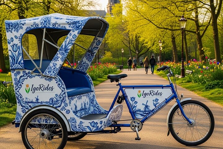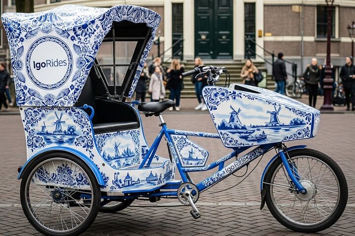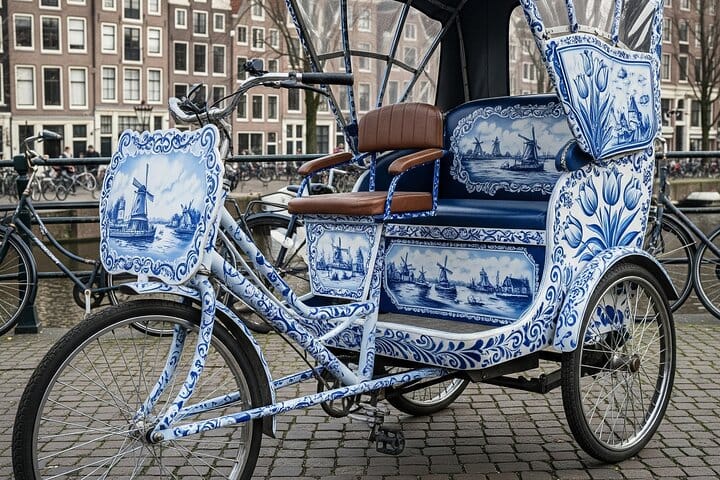 Discover Amsterdam's charm on a Delft Blue Rickshaw ride, an eco-friendly way to explore the city's stunning canals and hidden gems. Each ride reflects the iconic Delft Blue pottery, offering a unique glimpse into Dutch heritage. Friendly local drivers share insider stories and recommendations, making your journey personal and memorable. Perfect for romantic outings, family adventures, or simply getting around the city with ease.
